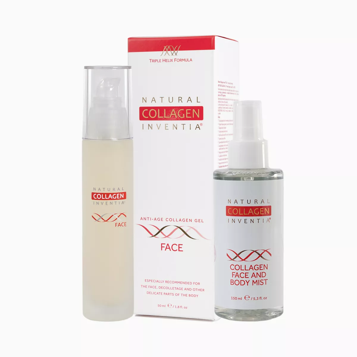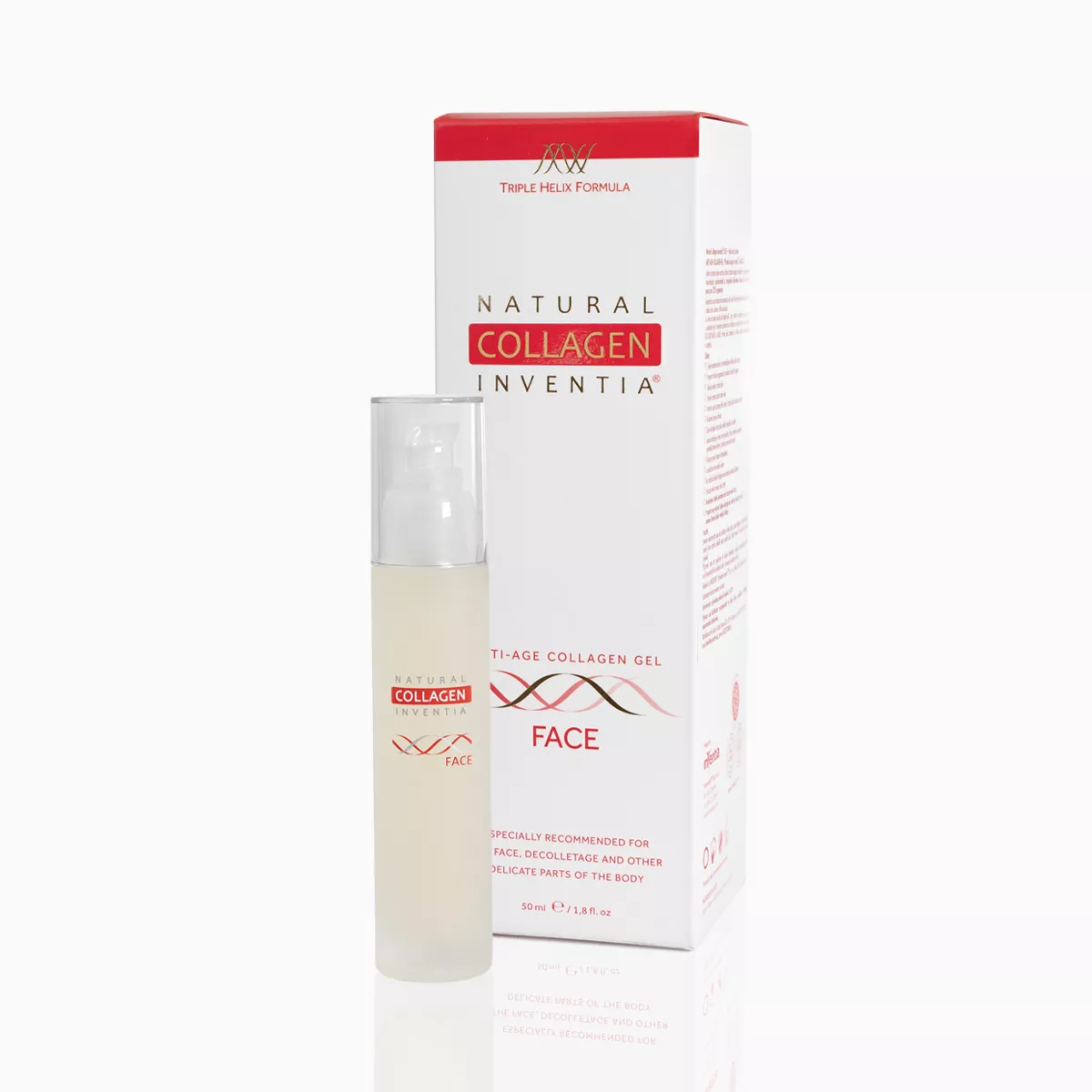 EXKLUZIVNÍ živý, 100% přírodní kolagen Inventia® FACE - na obličej a citlivé partie těla je určený k nadstandardnímu anti-age ošetření všech typů ženské a mužské pleti - mladé, zralé, unavené, stárnoucí, stresované, suché, ale i problematické a citlivé pokožky obličeje, krku, dekoltu a očního okolí. Kolagenový gel v podobě hydrátu viditelně zvyšuje hydrataci, oživuje, regeneruje, rozjasňuje a omlazuje pleť, vyhlazuje ji a vypíná, redukuje vrásky a dlouhodobě předchází vzniku nových.