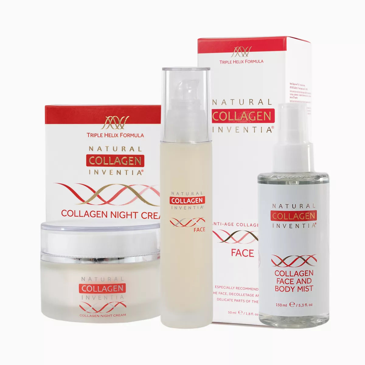 EXKLUZIVNÍ živý, 100% přírodní kolagen Inventia® FACE - na obličej a citlivé partie těla je určený k nadstandardnímu anti-age ošetření všech typů ženské a mužské pleti - mladé, zralé, unavené, stárnoucí, stresované, suché, ale i problematické a citlivé pokožky obličeje, krku, dekoltu a očního okolí. Kolagenový gel v podobě hydrátu viditelně zvyšuje hydrataci, oživuje, regeneruje, rozjasňuje a omlazuje pleť, vyhlazuje ji a vypíná, redukuje vrásky a dlouhodobě předchází vzniku nových.
